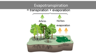 L'évapotranspiration (ET) représente le processus combiné à la fois d'évaporation de l'eau depuis la surface de la Terre et de la transpiration des végétaux. (IPCC AR5)