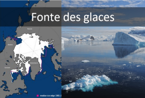 « La fonte des glaces fait augmenter le niveau des océans » bien que communément admise, cette affirmation est fausse. En effet, la fonte des glaces regroupe trois phénomènes bien distincts : la fonte des glaciers, la fonte des calottes glaciaires et la fonte de la banquise. Dans ces trois masses de glace, seules la fonte des glaciers et des calottes sont responsables de la montée des eaux.