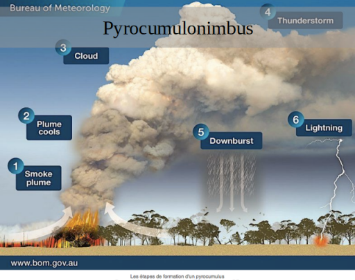 Le pyrocumulonimbus est un nuage formé par un incendie de forêt de grande ampleur. En effet, la chaleur intense dégagée par l'incendie et l'évaporation de la végétation brûlée mène à une condensation qui forme ce nuage chargé de particules de fumée et de suie venant de la combustion. Dans des conditions spéciales où l'atmosphère est suffisamment instable et humide, les fumées sont attirées vers le haut et forment un immense panache de couleur grise, brune ou noire.