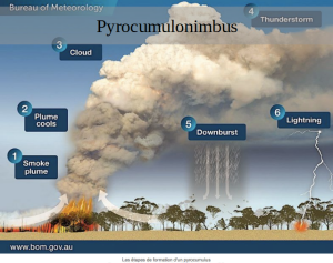Le fondateur du ‘Fire Weather Research Lab', Craig Clements, constate que le taux de pyrocumulonimbus dus aux incendies en Australie est unique, ce phénomène restant très rare. Selon lui, cet incendie a provoque « la plus grande épidémie de pyrocumulonimbus sur Terre ».