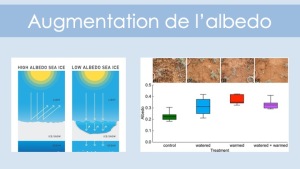 Cette augmentation de l’albédo a donc pour effet de diminuer l'énergie à la surface de la terre et donc la température et les précipitations.