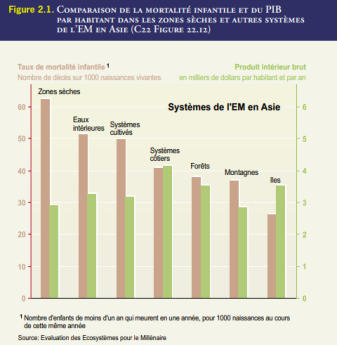 Comme le montre ce graphique, la mortalité infantile est beaucoup plus élevée dans les zones sèches, d'autant plus que ces régions sont souvent très pauvre.