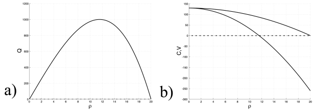 On définit la vitesse \(C(\rho) = {Q'( \rho) }= V_{\rm max} \left( 1 - 3 \, \rho^2/\rho^2_{\rm max}\right)\) et l'on