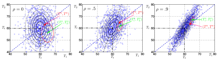 \(\displaystyle J(T) = {1\over 2} \;\begin{matrix}(T_1^o-T, & T_2^o-T)\end{matrix}\left(\begin{matrix}\sigma_1^2 & \rho\, \sigma_1 \, \sigma_2 \cr\rho\, \sigma_1 \, \sigma_2 & \sigma_2^2\end{matrix}\right)^{-1}\left(\begin{matrix}T_1^o-T \cr T_2^o-T\end{matrix}\right)\)