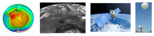 Satellite data: surface temperature and winds, cloudiness, chemical concentrations...