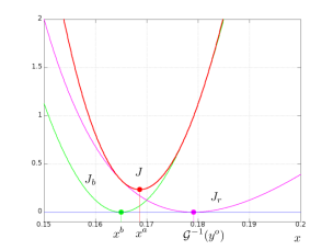 \(\displaystyle J_b(x) = { (x- x^b)^2 \over 2\, \sigma_b^2}\) and \(\displaystyle J_r(x) = { [ y^o + {q \over x -h_L} ]^2 \over2 \, \sigma_r^2}\)