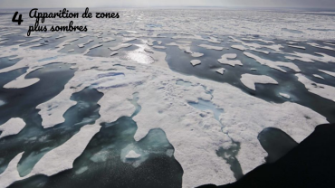 En effet, ce sont maintenant directement les océans qui emmagasinent la chaleur. L'albédo de la glace est de 60%, tandis que celui de l'eau se situe entre 5 et 10 %. Les zones sombres absorbent plus de chaleur et donc catalysent la fonte de la banquise.