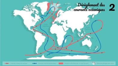 -présence de différentes couches (eau chaude/froide/salée/douce) qui peuvent se mélanger ce qui affecte la chaîne alimentaire et la faune de l'arctique.
