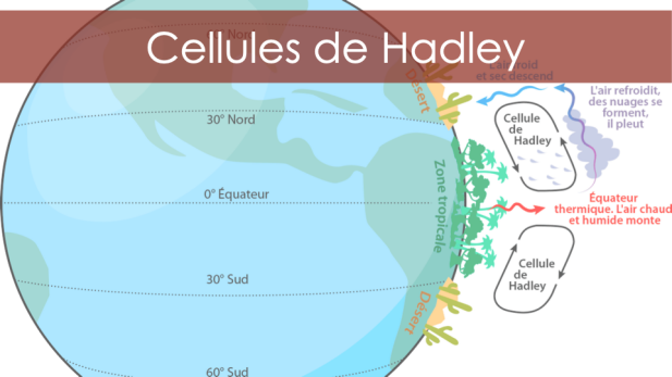 Les cellules de Hadley sont deux cellules de circulation de l'air entre l'équateur et des latitudes moyennes de 30°.