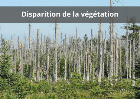 Les dépositions acides affectent directement les plantes à travers leurs feuilles et troncs mais aussi par les racines à cause de l'appauvrissement des sols.