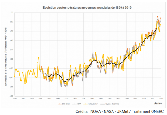 La principale cause du réchauffement climatique est l'augmentation des gaz à effet de serre qui piège une partie du rayonnement solaire. Les rayonnements n'étant pas réfléchis par l'atmosphère ils sont absorbés par la surface terrestre qui va se réchauffer en l'absorbant.