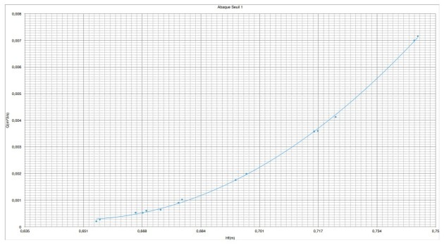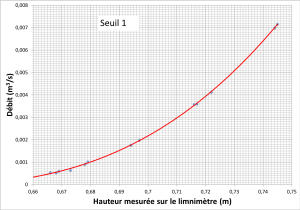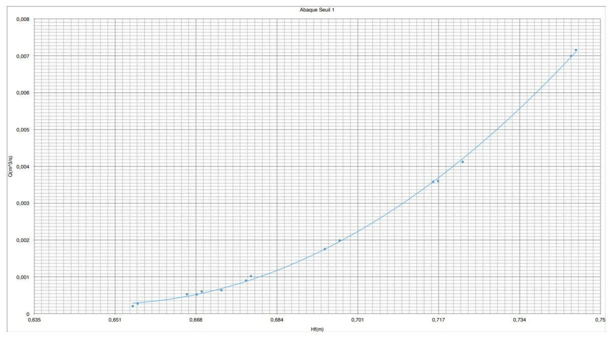 L'abaque permettant de calculer le débit pour cette expérience est disponible ici : Abaque pour le seuil \(\alpha=1\) (angle droit)[1]