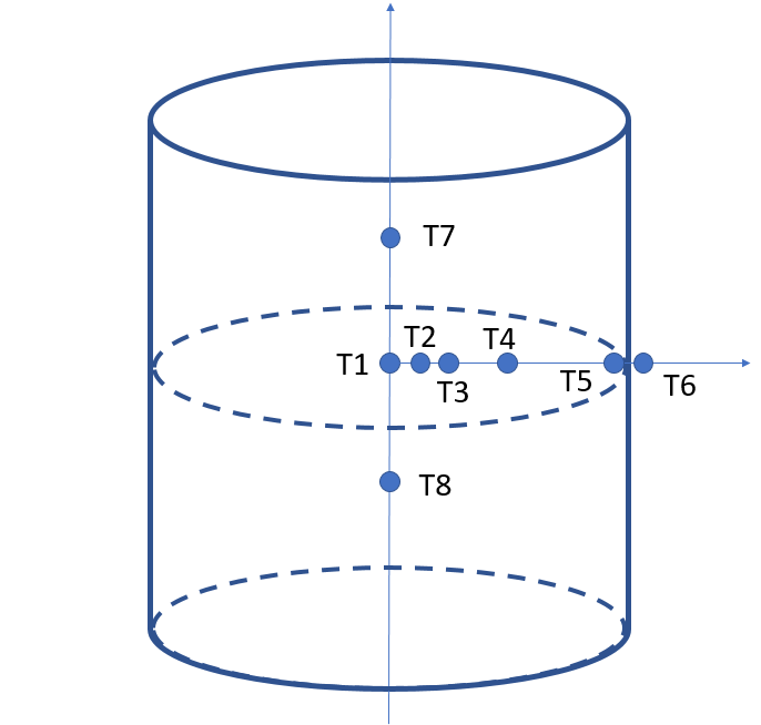 Les thermocouples sont placés dans le sable de la façon suivante :