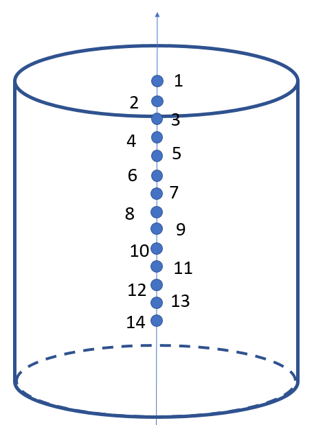 Les thermocouples, au nombre de quatorze, sont positionnés dans le sable à différentes profondeurs. Le