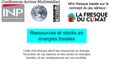 La carte « Énergies fossiles » du jeu « La Fresque du Climat[1] » est détaillée dans cette «Conférence Active Multimédia ».