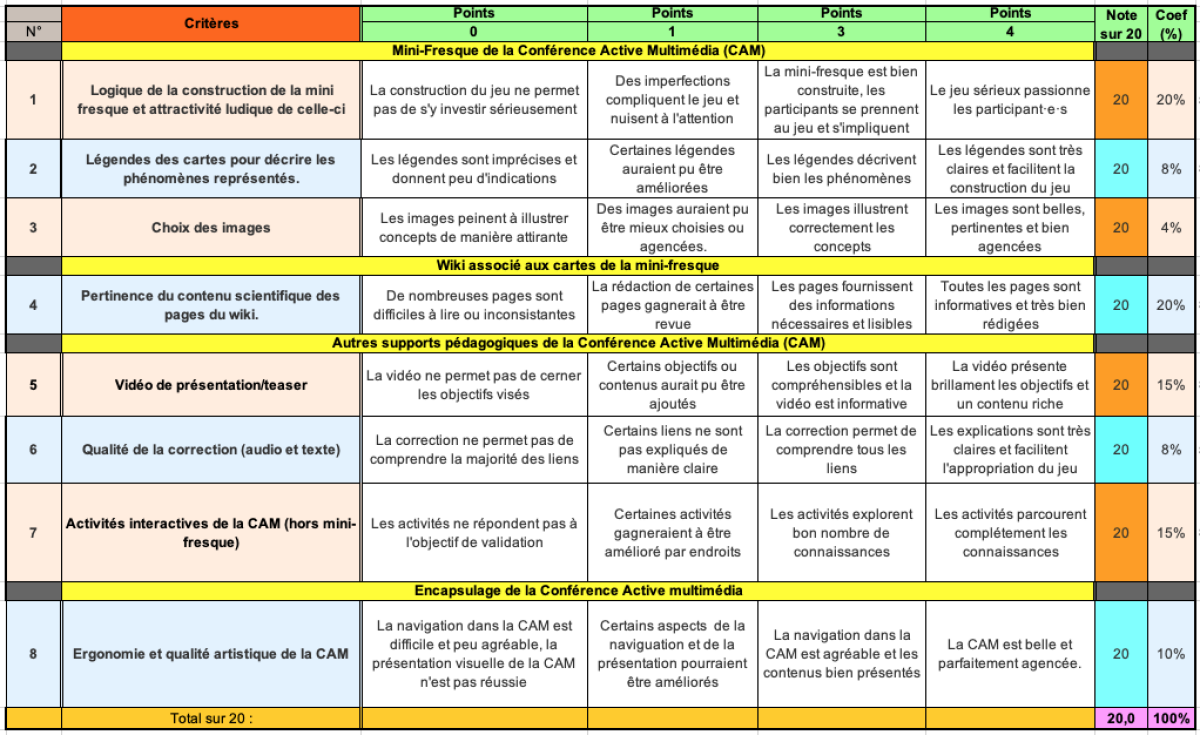Les mini-fresques seront créées à l'aide de modules H5P (des tutoriels sont à disposition pour leur création), et chacune de leurs cartes fera l'objet d'une page wiki (L2).