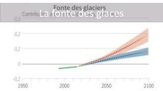 La fonte des glaciers est un phénomène qui s'est accru ces dernières années (dû au réchauffement climatique) et entraîne donc la montée des eaux.