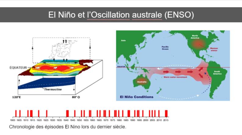 L'oscillation australe est la variation périodique et naturelle de pression entre l'océan indien et atlantique. Quand elle est conjugué à un affaiblissement des vents, elle tend à rompre la circulation de Walker par réduction du gradient de température. Cela entraine diverses conséquences climatiques comme le déplacement des zones de précipitations et le réchauffement des eaux de l'est, c'est ces phénomènes que l'on appelle El Niño.