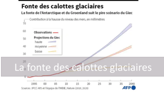 La fonte des calottes glaciaires tout comme la fonte des glaciers à un impact majeur sur la montée des eaux.