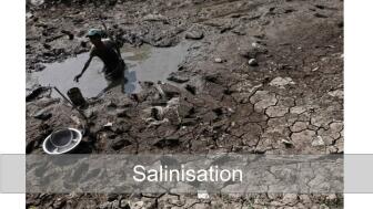 Suite à la montée des eaux, l'eau salée venant des océans s'introduit dans les nappes souterraines affectant l'activité agricole, la biodiversité et les ressources en eaux douces.