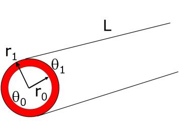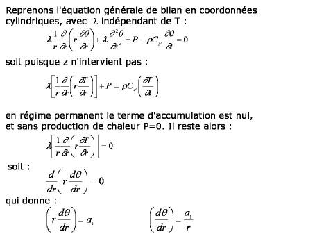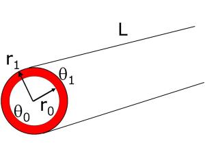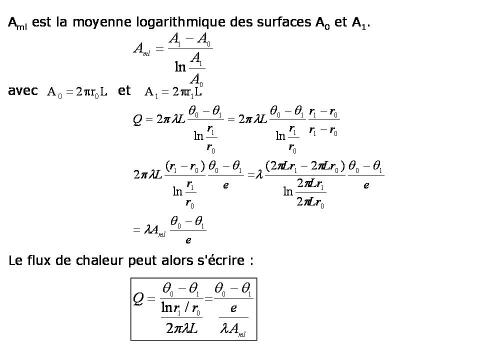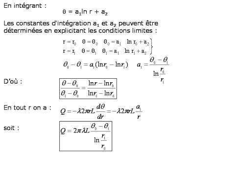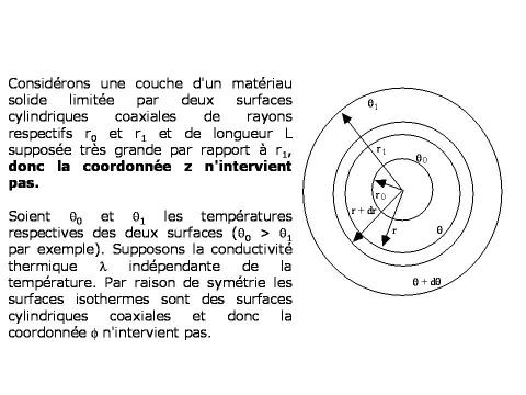 Considérons une couche d'un matériau solide limitée par deux surfaces cylindriques coaxiales de rayons respectifs r0 et r1 et de longueur L supposée très grande par rapport à r1 (ceci permet de supposer que la propagation de la chaleur ne s'effectue que dans le sens radial et qu'il n'y a pas d'effet d'extrémité).