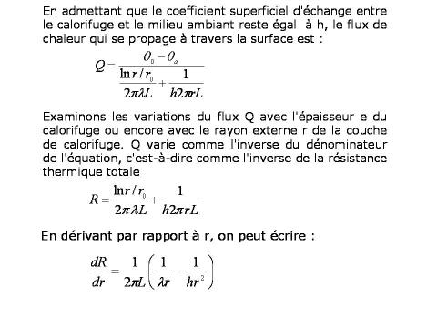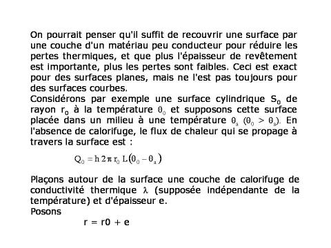 On pourrait penser qu'il suffit de recouvrir une surface par une couche d'un matériau peu conducteur pour réduire les pertes thermiques, et que plus l'épaisseur de revêtement est importante, plus les pertes sont faibles. Ceci est exact pour des surfaces planes, mais ne l'est pas toujours pour des surfaces courbes.