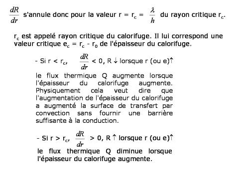 Physiquement cela veut dire que l'augmentation de l'épaisseur du calorifuge a augmenté la surface de transfert par convection sans fournir une barrière suffisante à la conduction.