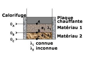 On rapporte la mesure de la conductivité d'un solide à celle, connue, d'un autre solide. On superpose alors deux plaques d'épaisseurs e1 et e2 et de conductivités thermiques λ1 et λ2.