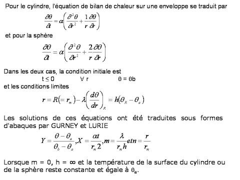 Considérons un cylindre long ou une sphère dont la température initiale est θb et supposons que ce cylindre ou cette sphère soit brusquement mis en contact avec un fluide dont la température θa est maintenue constante.