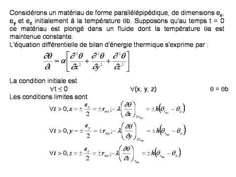 Dans le cas de ces objets, initialement à la température θb, plongés dans un fluide à la température θa, on ne peut rester en monodimensionnel.