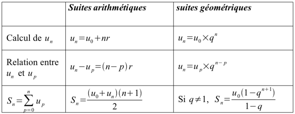 Une suite est géométrique si chacun de ses termes se déduit du précédent en le multipliant par une constante appelée raison. est définie sur par son premier terme et par :