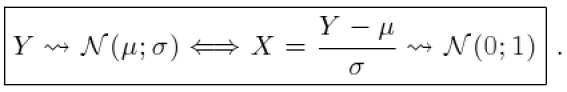 Soit X une v.a.r. suivant une loi normale centrée réduite \(N (0; 1)\). On pose \(Y = \sigma X + \mu\).