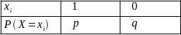 On obtient : \(E(X)=p\) et \(V(X)=pq\).
