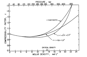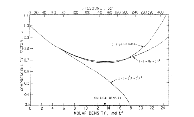au dessus de la température critique, l'équation est valide jusqu'à la densité molaire critique, mais nécessite au moins 4 ou 5 coefficients dans ce cas.