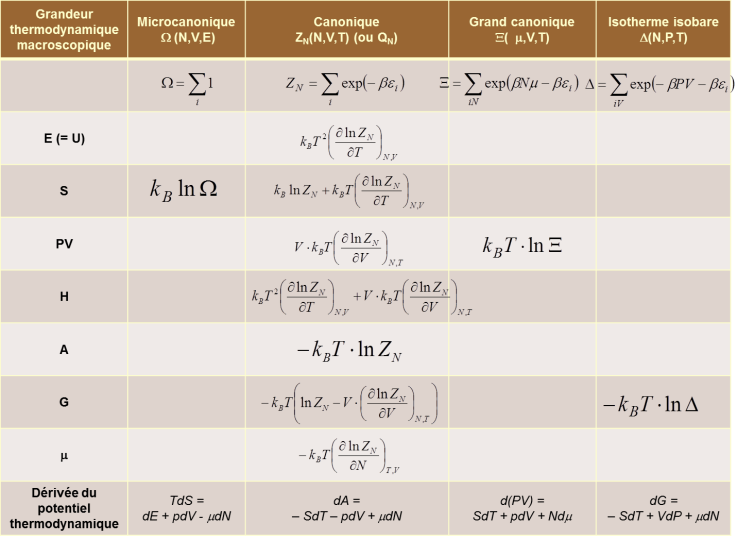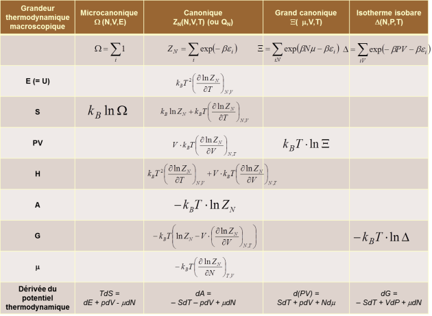 récapitulatif des ensembles NVU, NVT, μVT, NPT