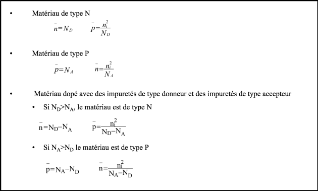 La densité des minoritaires est donnée par la loi d'action de masse qui s'écrit : et