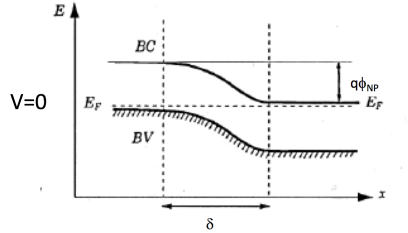 Les recombinaisons ont lieu dans la zce[2] et dans les régions neutres N et P. Dans chacune de ces dernières, la zone émettrice est limitée à la longueur de diffusion des minoritaires. La zce[2] joue un rôle mineur dans la mesure où elle est inexistante lorsque la jonction est polarisée en direct. On a :