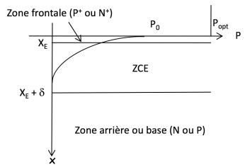 Les zones frontales étant en général très dopées, nous admettrons qu'elles peuvent être considérées comme zone morte. En effet, le courant qui y est photogénéré est un courant de diffusion quasi nul étant donné qu'à forts dopages, les durées de vie et les longueurs de diffusion y sont extrêmement faibles