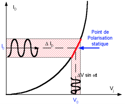 Pour la déterminer, on dérive l'équation d'état de la diode autour du point de fonctionnement :