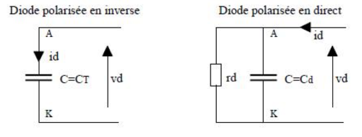 Le modèle de la diode en régime dynamique dépend de sa polarisation :
