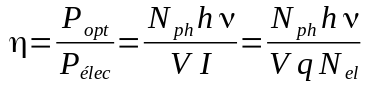 représente le rendement quantique externe, soit le rapport entre le nombre de photons émis et le nombre de charges traversant la jonction.