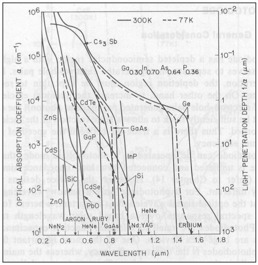 α est le coefficient d'absorption de la lumière. Il dépend de la longueur d'onde, de la température et bien sûr du SC. On trouve sa valeur dans le graphe ci-dessous :