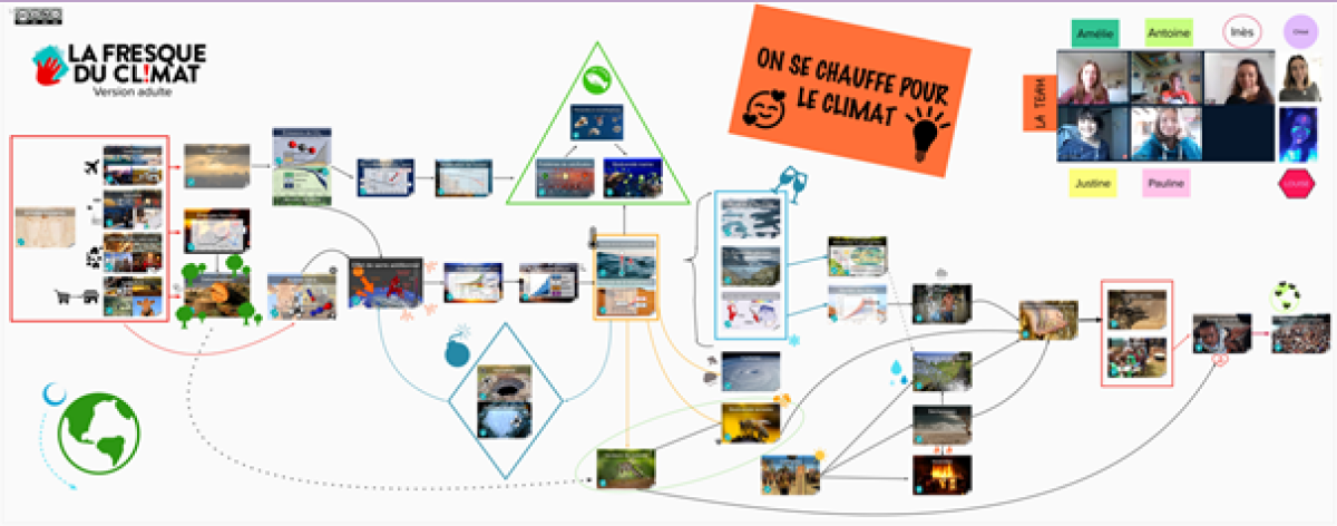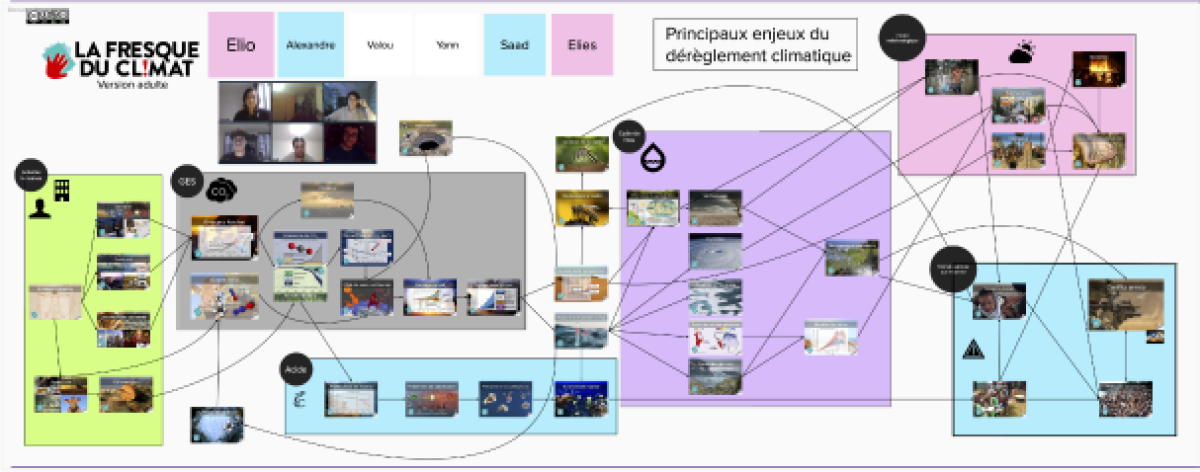 Douze « Fresques du Climat » ont été créées et mises en ligne. Dix animatrices et animateurs étudiant·e·s ou enseignant·e·s, parmi les 130 formé·e·s en prévision de cette Rentrée Climat, ont permis le succès de cette première journée, avec le renfort d’animatrices extérieures à l’établissement. La page Moodle permettant de consulter les « Murals » des groupes, c’est-à-dire les tableaux collaboratifs qui ont servi à construire les fresques, restera consultable toute l’année.